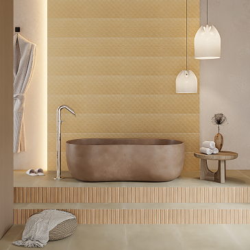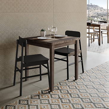 Decori, antichi vocaboli e segni sardi sono impressi in un gioco di trasparenze e sfumature, la purezza di colori terrosi e minimalisti di Essentzia si sposa a molteplici moduli di decori creando infinite composizioni dall’essenza della terra.